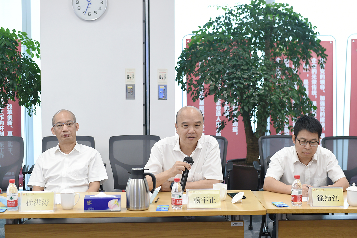 仪式开始前,双方进行了座谈。张招兴董事长介绍了越秀集团的基本情况、发展战略以及近期主要改革发展成果。张董指出,近年来,集团高度重视与国有企业间的合作,广州交投集团与越秀集团同为市属国企,在交通基建、工程建设、金融服务、城市运营和食品业上有较大的合作空间,希望双方积极主动利用优势资源,实现高效合作。
