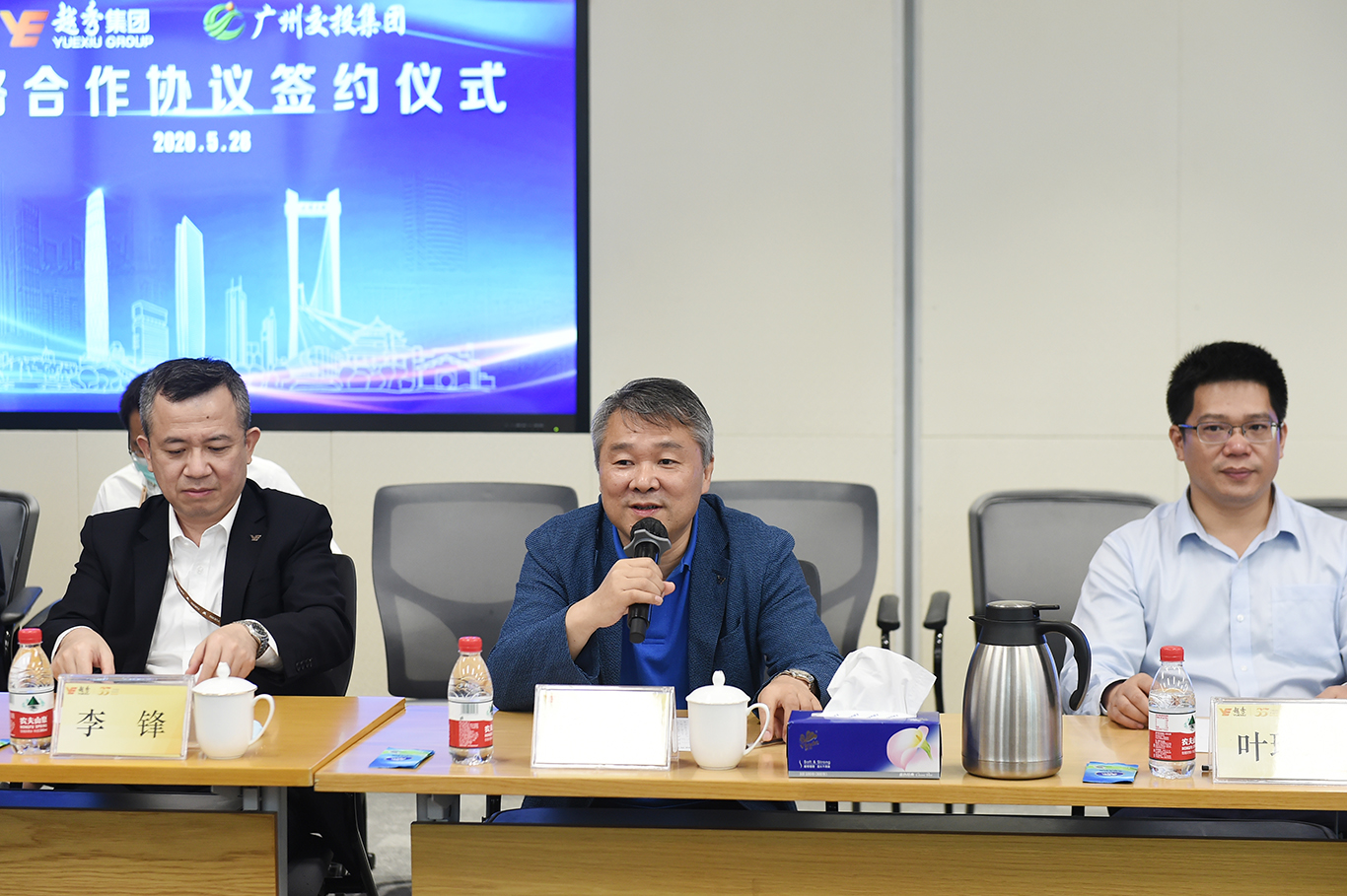 仪式由越秀集团总法律顾问贺玉平主持,越秀集团首席资本运营官李锋、管委会主任助理何柏青、管委会主任助理谢延会,广州交投集团副总经理杜洪涛、副总经理李更新等领导出席仪式。